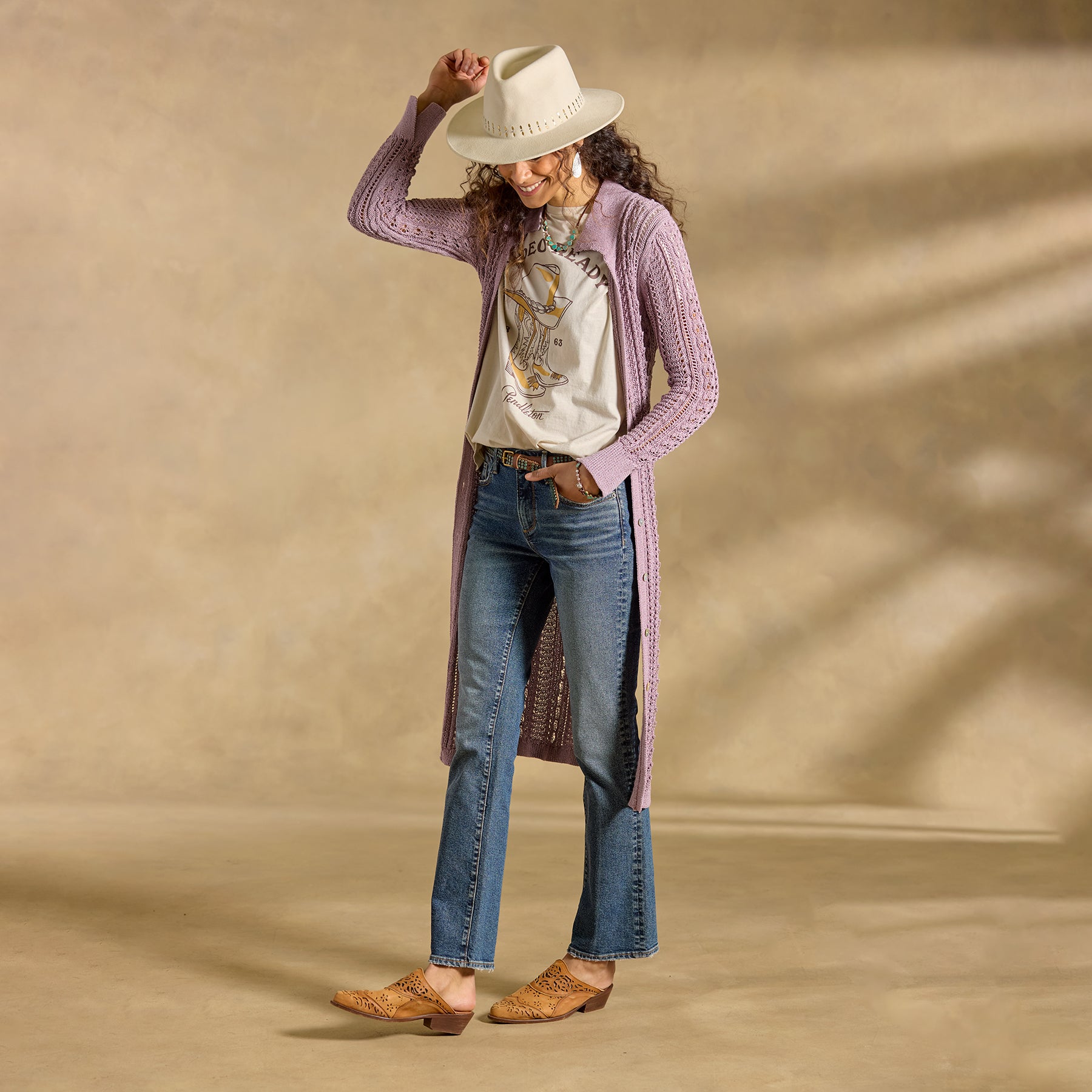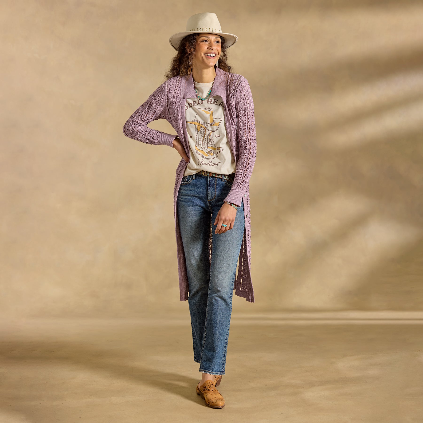 Meet our most subtle statement sweater: the Augusta Duster. With lightweight yarn and an artful open stitch. she’s equally cozy over jeans or your favorite maxi. Poly/cotton/nylon/lurex/linen. Hand wash. Imported. Exclusive. Sizes XS (0–2). S (4–6). M (8–10). L (12–14). XL (16–18). XXL (20–22). Approx. 42.5l.
