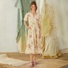A Sundance favorite now in a gorgeous updated floral print. this button front dress features flutter sleeves. smocking at the waist and a tiered hem. Eyelash stitch details. Cupro. Hand wash. Imported. Exclusive. Sizes XS (0-2). S (4-6). M (8-10). L (12-14). XL (16-18). XXL (20-22). Approx. 44.5l.