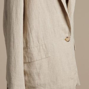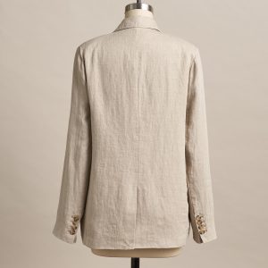 Easy. comfortable blazer with one faux horn button closure. Lined in a vintage floral print. Center vent. Linen. Machine wash. Imported. Exclusive. Sizes XS (0 to 2). S (4 to 6). M (8 to 10). L (12 to 14). XL (16 to 18). XXL (20 to 22). Approx. 28.5l.