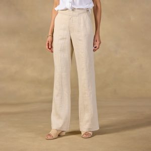 Meet our Renata Trousers: an easy. unexpected way to elevate your warm-weather wardrobe. We’ve paired light herringbone linen with a longer length and exquisite tailoring—including a flared leg and top-stitched details. Machine wash. Imported. Exclusive. Sizes 2–16. 31 inseam.