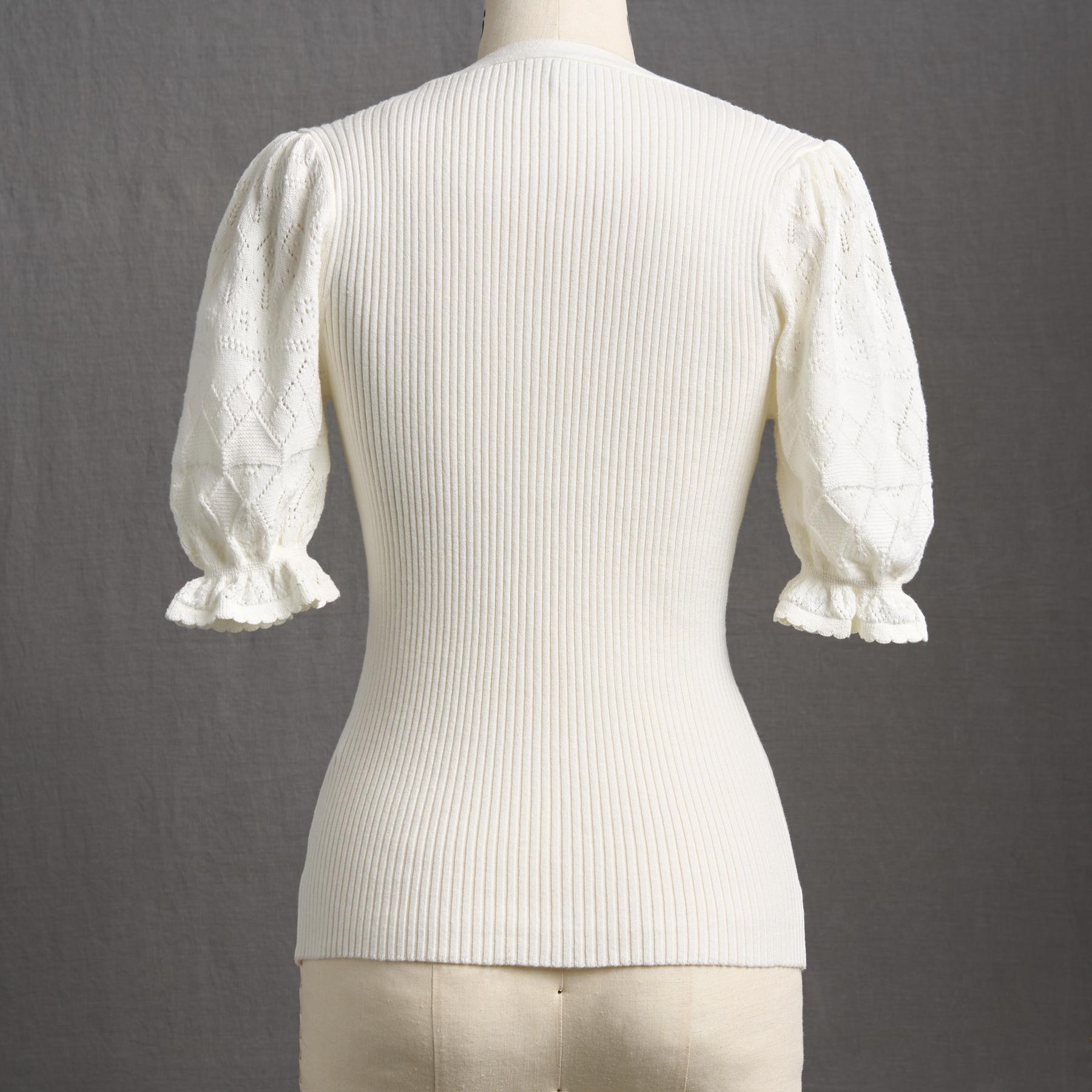 Experience the essence of luxury in our feminine and fitted V-neck henley. so soft in our Legends Lightweight Yarn. Beautiful pointelle at the bold puff sleeves and special scalloped trim details add an extra touch of grace. Organic cotton/nylon/spandex. Machine wash. Imported. Exclusive. Sizes XS (0??). S (4??). M (8??0). L (12??4). XL (16??8). XXL (20??2) Approx. 22.5l.